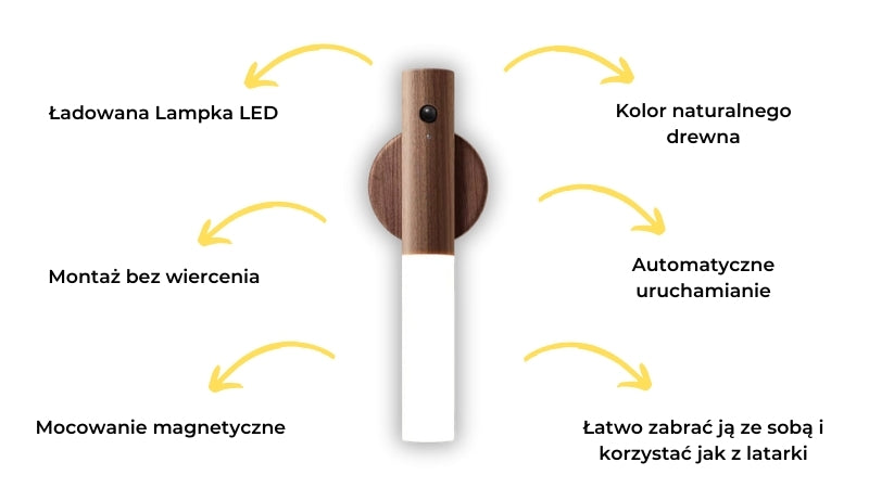 - Zestaw zawiera 1 przenośny kinkiet LED Good Light w kolorze drewna