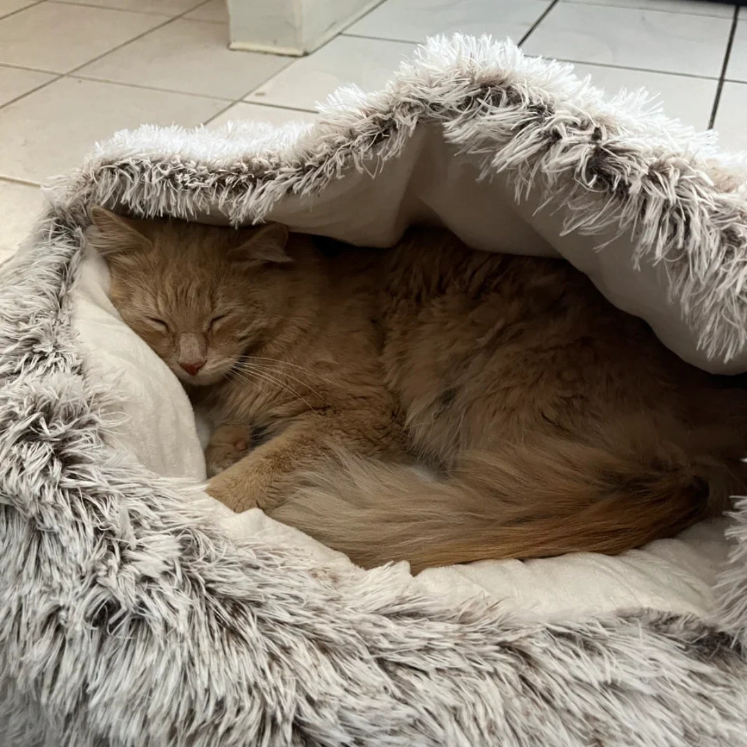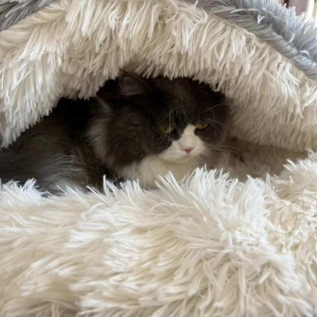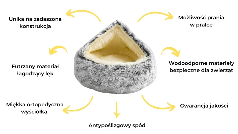 Konstrukcja legowiska, która się nie zapada, daje Twojemu kotu poczucie bezpieczeństwa, jakie odczuwa, chowając się w ciasnych miejscach. Z tą różnicą, że tutaj się nie zgubi, nie utknie ani nie zmarznie!