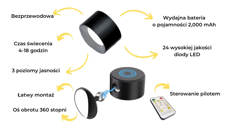 Lampa ścienna Lumea LED oferuje bezprzewodowe oświetlenie pomieszczenia, które zachwyca ponadczasowym designem, wszechstronnymi możliwościami zastosowania i różnymi trybami oświetlenia.