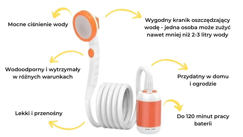 Mycie się pod publicznymi prysznicami podczas wyjazdów na kemping, niewygodne podlewanie kwiatów, lub uciążliwe płukanie auta pod domem to przeszłość!