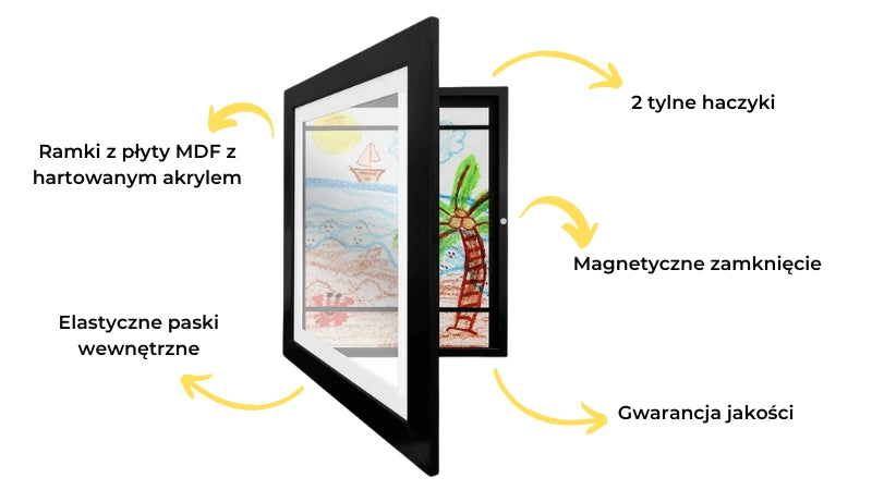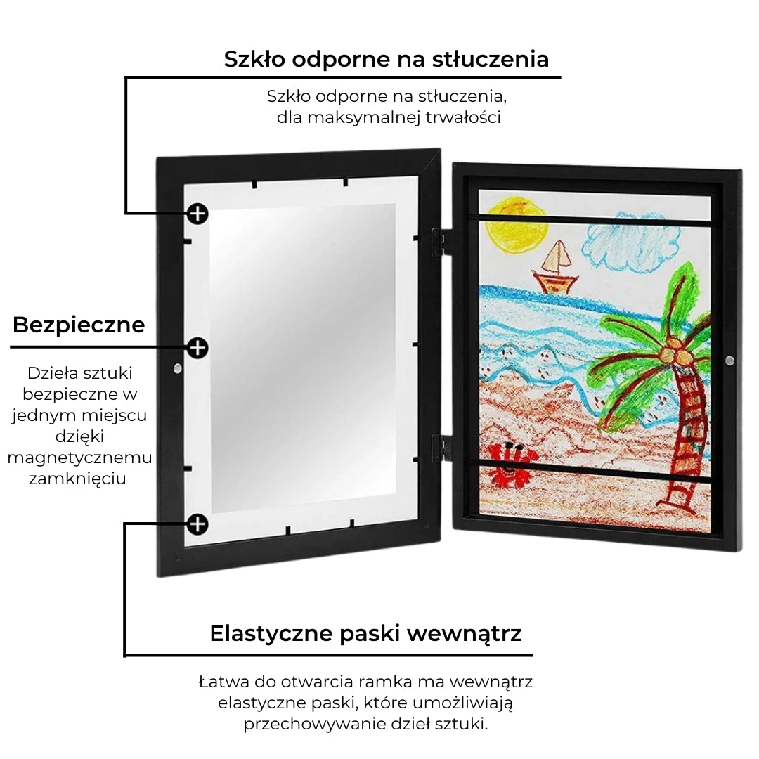 Nareszcie możesz zapewnić kreatywnym projektom Twojego dziecka miejsce, na jakie zasługują! Dzięki tej specjalnie zaprojektowanej ramce możesz pięknie wyeksponować prace Twojego Małego Artysty i łatwo przechowywać poprzednie malunki. Ramka EasyOpen jest idealna do rysunków, prac w 2D i 3D, certyfikatów i zdjęć