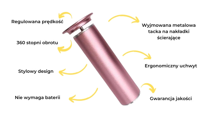 Elektryczny pilnik SilkTouch jest wyposażony w 60 wysokiej jakości padów ścierających. Wyjmowana tacka ułatwia wymianę padów. Dzięki zasilaniu bezpośrednio z gniazdka, możesz cieszyć się niezawodną wydajnością bez konieczności wymiany baterii! Dodatkowo, z regulowaną prędkością do nawet 500 obrotów na minutę, możesz dostosować intensywność pracy urządzenia, do swoich potrzeb.