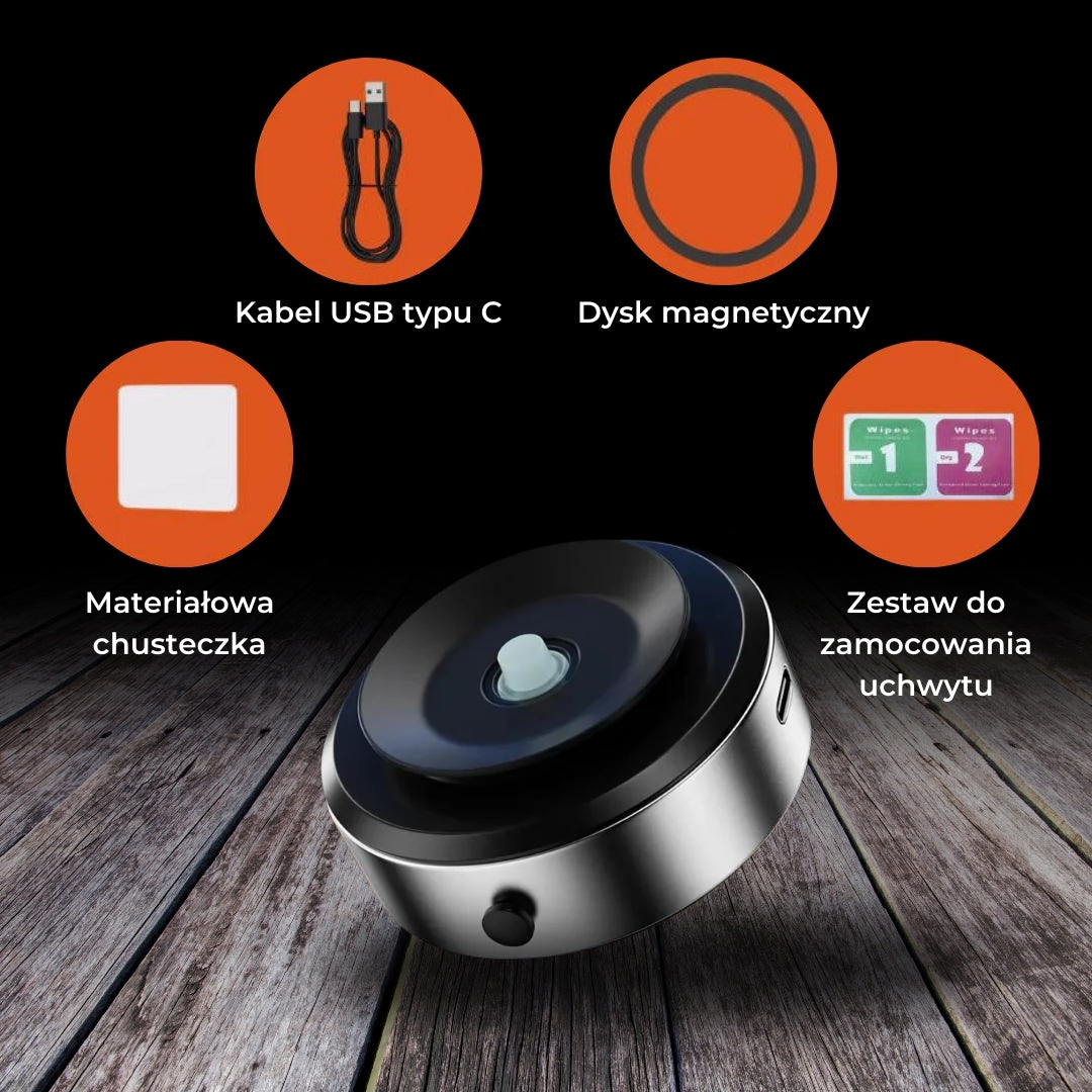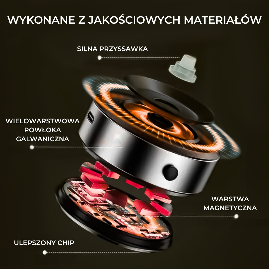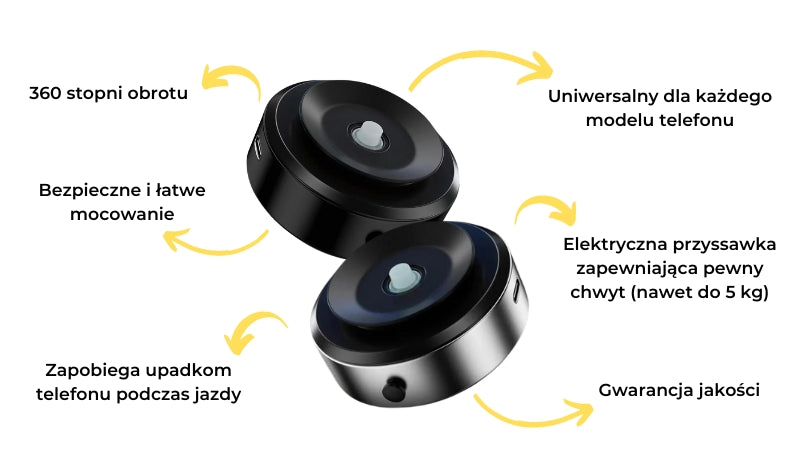 Oszczędza miejsce i zapewnia bezpieczne mocowanie telefonu. Fantastycznie sprawdza się w aucie, do nawigacji i rozmów bez użycia rąk.